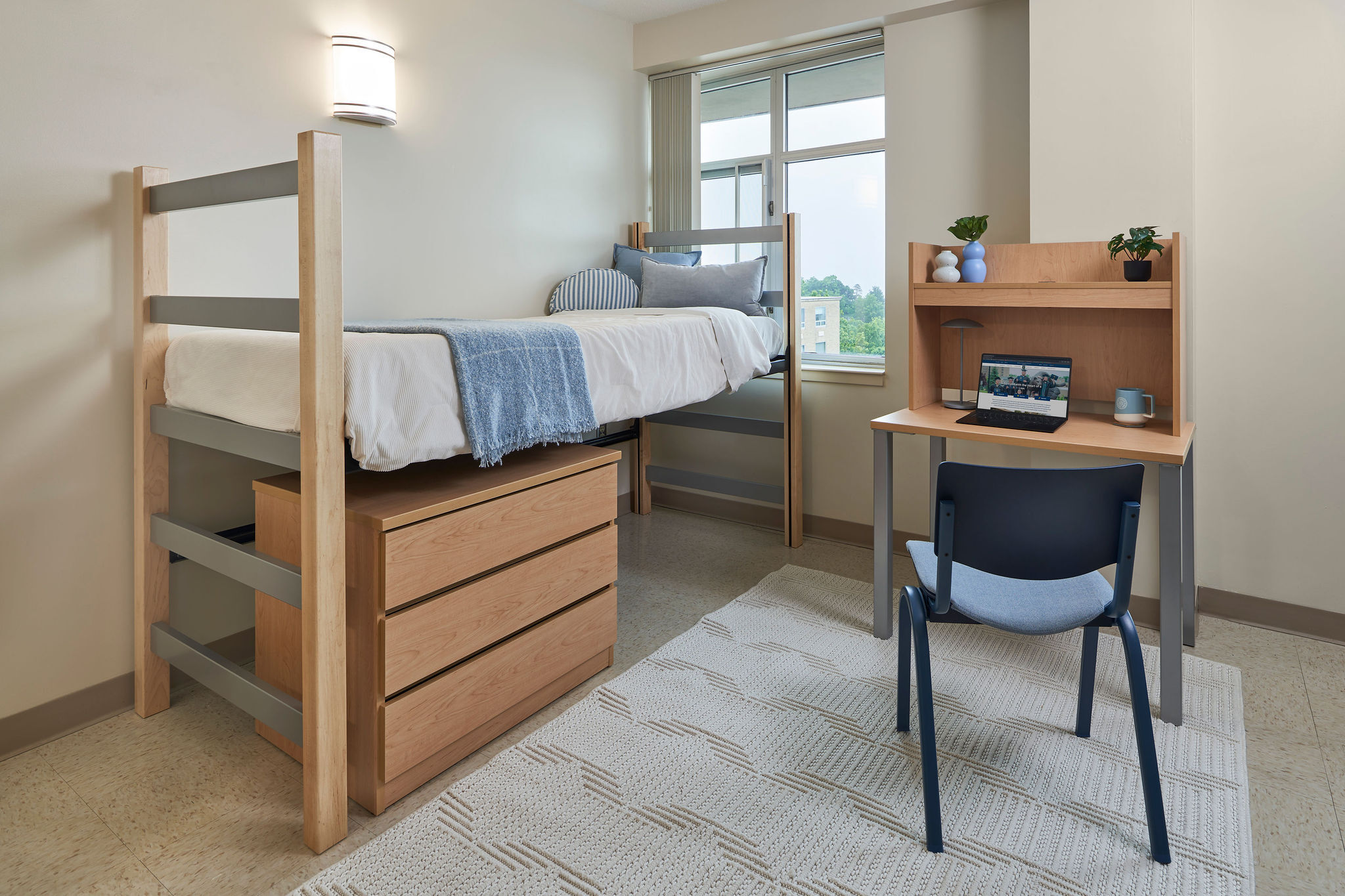 Designed to meet the needs of the most demanding environments, the simple clean lines and mixed materials of Maxwell combine to create a timeless, contemporary aesthetic. Pair Essentials casegoods with the Maxwell bed to get a complete bedroom outfit.