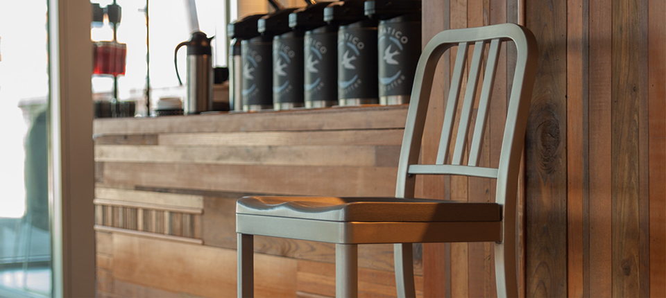 The Siren Chair has a brushed aluminum frame, making it lightweight and durable. This chair is great for indoor dining applications and is available with a wood, brushed aluminum, or upholstered seat. Its classic design characteristic give off an industrial vibe that can be played up or down depending to fit any space.
